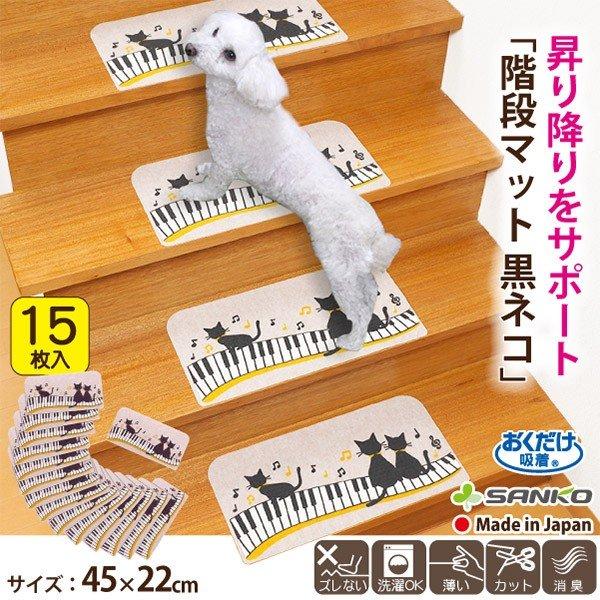 階段 マット おしゃれ 滑り止め 洗える 転倒防止 高齢者 ペット 犬 黒ネコ 猫 15枚組 おくだけ吸着 サンコー 日本製 398 サンコーオンラインショップ 通販 Yahoo ショッピング
